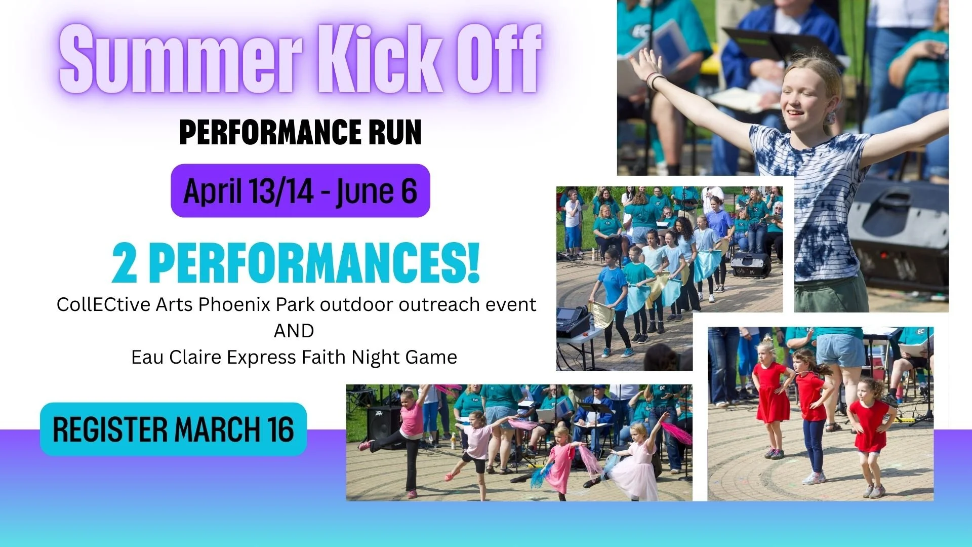 We also have an exciting opportunity this run to perform as part of the Eau Claire Express Faith Night on Sunday May 31st*. More details to come! (*not all groups will perform on telecast)